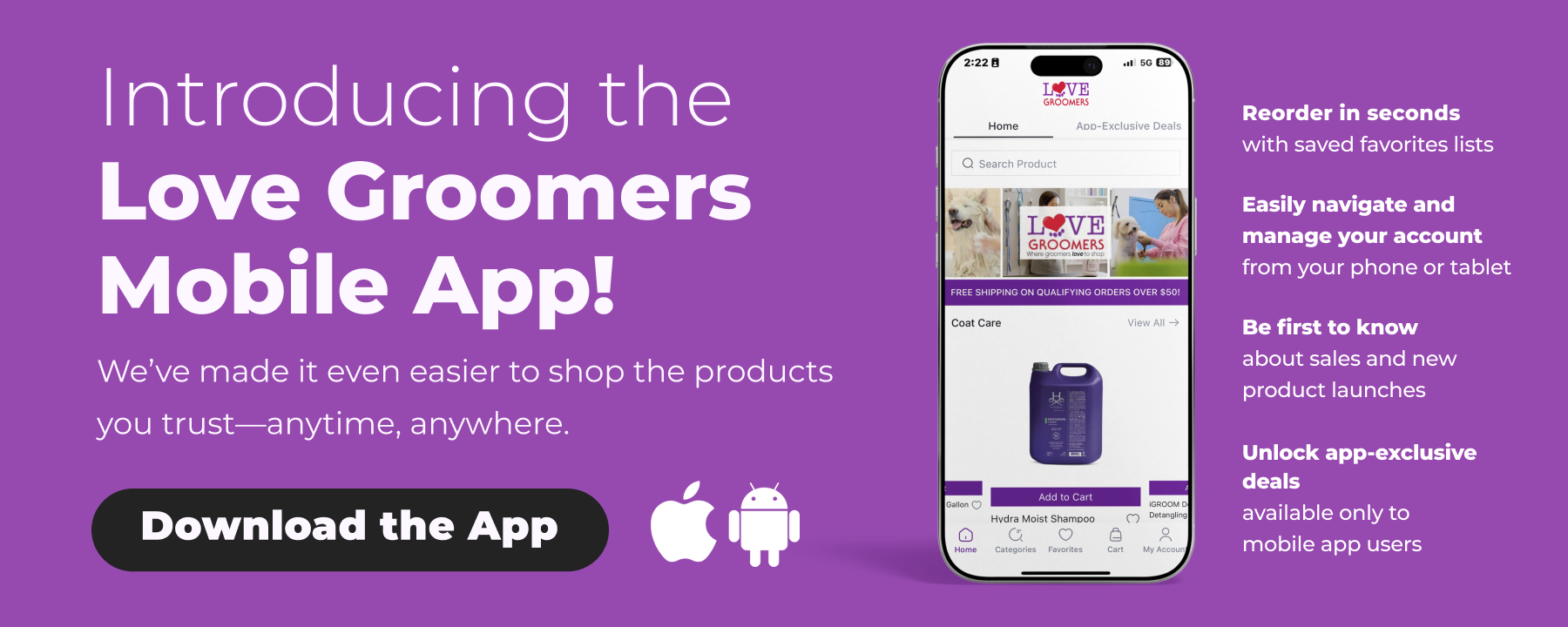 Available now for Apple and Android, the Love Groomers App makes it easier than ever to shop your favorite products, reorder supplies, and stay connected with the latest deals — all from the palm of your hand.